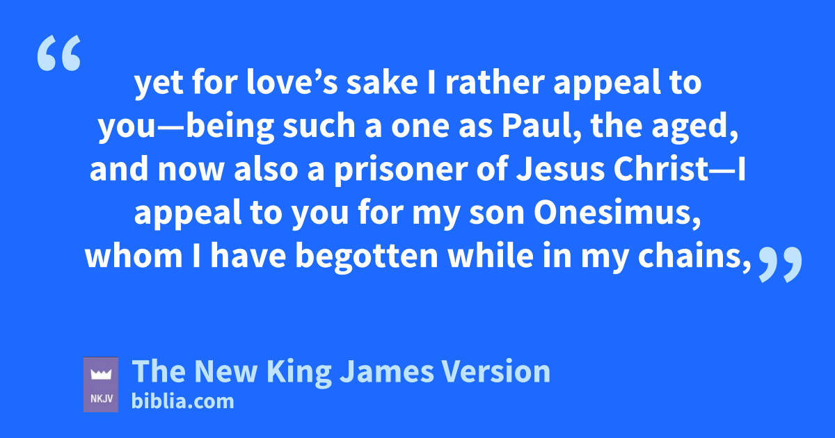 8 Therefore, though I might be very bold in Christ to command you what is fitting, 9 yet for love’s sake I rather appeal to you—being such a one as Paul, the aged, and now also a prisoner of Jesus Christ—10 I appeal to you for my son gOnesimus, whom I have begotten while in my chains, 11 who once was unprofitable to you, but now is profitable to you and to me.