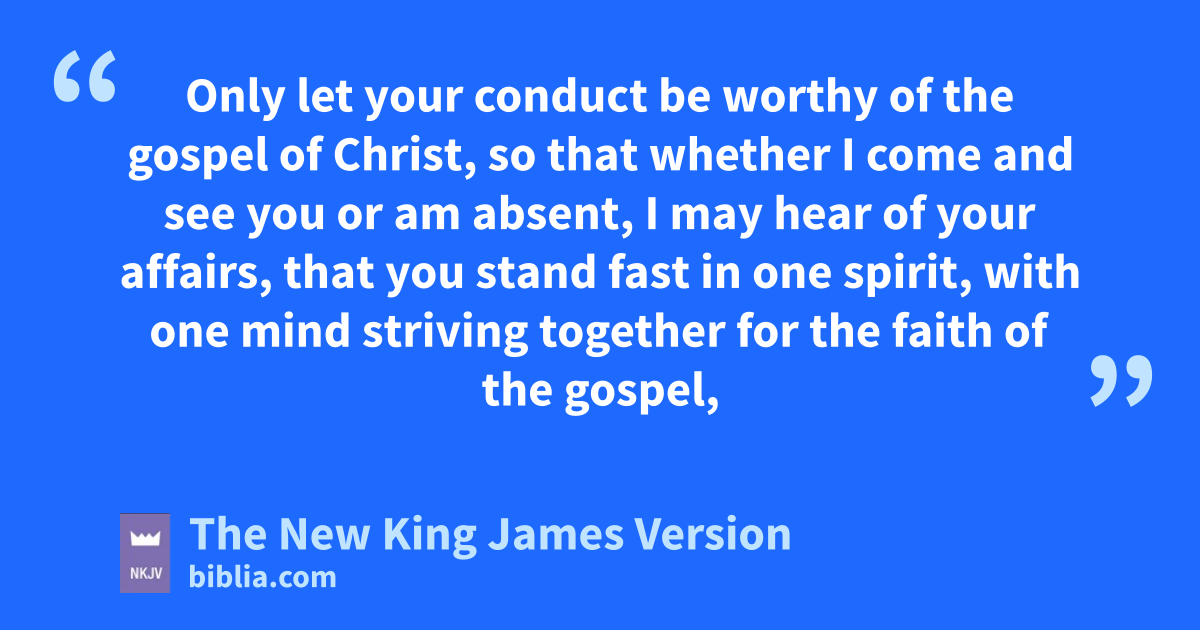 27 Only olet your conduct be worthy of the gospel of Christ, so that whether I come and see you or am absent, I may hear of your affairs, that you stand fast in one spirit, pwith one mind qstriving together for the faith of the gospel, 28 and not in any way terrified by your adversaries, which is to them a proof of perdition, but 6to you of salvation, and that from God. 29 For to you rit has been granted on behalf of Christ, snot only to believe in Him, but also to tsuffer for His sake, 30 uhaving the same conflict vwhich you saw in me and now hear is in me.