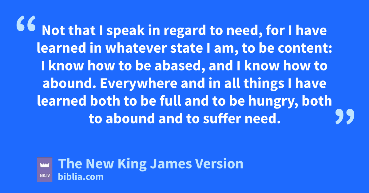 10 But I rejoiced in the Lord greatly that now at last ryour 3care for me has flourished again; though you surely did care, but you lacked opportunity. 11 Not that I speak in regard to need, for I have learned in whatever state I am, sto be content: 12 tI know how to 4be abased, and I know how to 5abound. Everywhere and in all things I have learned both to be full and to be hungry, both to abound and to suffer need. 13 I can do all things uthrough 6Christ who strengthens me.