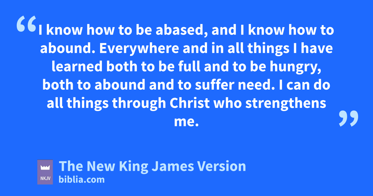 10 But I rejoiced in the Lord greatly that now at last ryour 3care for me has flourished again; though you surely did care, but you lacked opportunity. 11 Not that I speak in regard to need, for I have learned in whatever state I am, sto be content: 12 tI know how to 4be abased, and I know how to 5abound. Everywhere and in all things I have learned both to be full and to be hungry, both to abound and to suffer need. 13 I can do all things uthrough 6Christ who strengthens me.