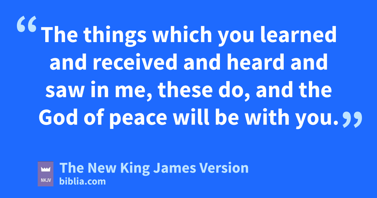 8 Finally, brethren, whatever things are ltrue, whatever things are mnoble, whatever things are njust, owhatever things are pure, whatever things are plovely, whatever things are of good report, if there is any virtue and if there is anything praiseworthy—meditate on these things. 9 The things which you learned and received and heard and saw in me, these do, and qthe God of peace will be with you.