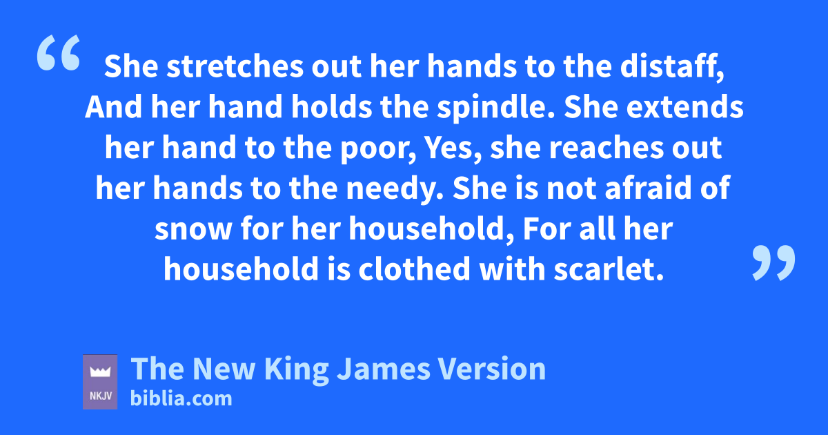 19 She stretches out her hands to the distaff,