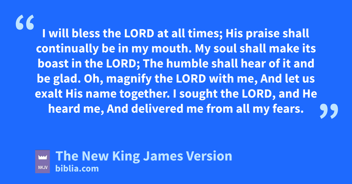 1 I will bbless the Lord at all times; His praise shall continually be in my mouth.