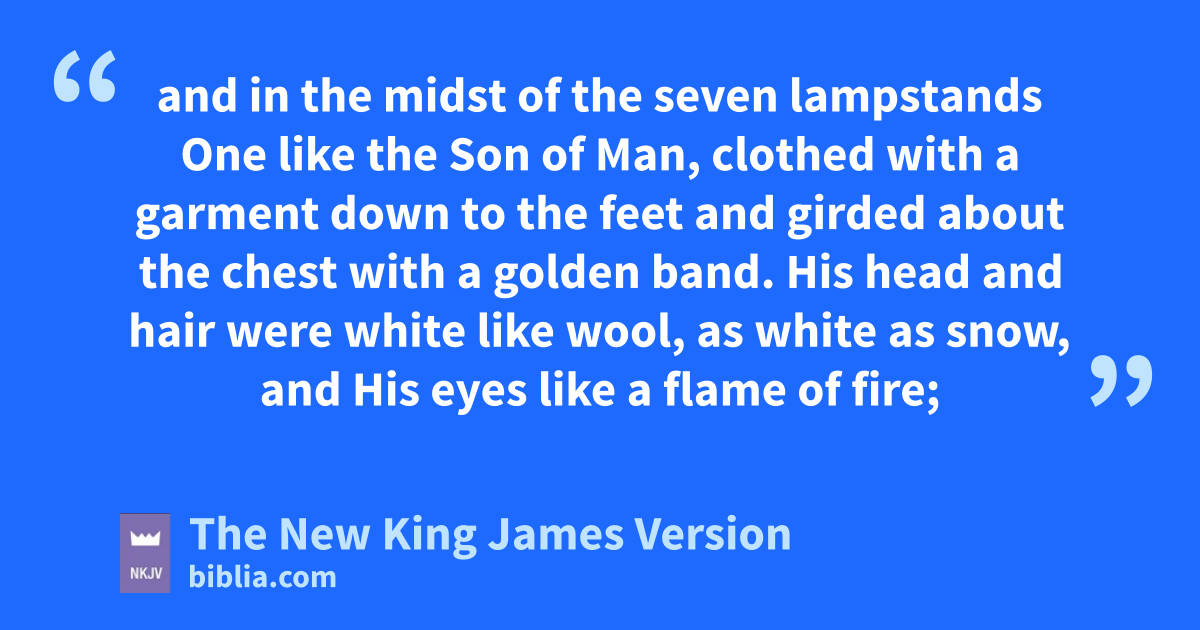 12 Then I turned to see the voice that spoke with me. And having turned bI saw seven golden lampstands, 13 cand in the midst of the seven lampstands dOne like the Son of Man, eclothed with a garment down to the feet and fgirded about the chest with a golden band. 14 His head and ghair were white like wool, as white as snow, and hHis eyes like a flame of fire; 15 iHis feet were like fine brass, as if refined in a furnace, and jHis voice as the sound of many waters; 16 kHe had in His right hand seven stars, lout of His mouth went a sharp two-edged sword, mand His countenance was like the sun shining in its strength. 17 And nwhen I saw Him, I fell at His feet as dead. But oHe laid His right hand on me, saying 9to me, “Do not be afraid; pI am the First and the Last. 18 qI am He who lives, and was dead, and behold, rI am alive forevermore. Amen. And sI have the keys of 1Hades and of Death. 19 2Write the things which you have tseen, uand the things which are, vand the things which will take place after this. 20 The 3mystery of the seven stars which you saw in My right hand, and the seven golden lampstands: The seven stars are wthe 4angels of the seven churches, and xthe seven lampstands 5which you saw are the seven churches.