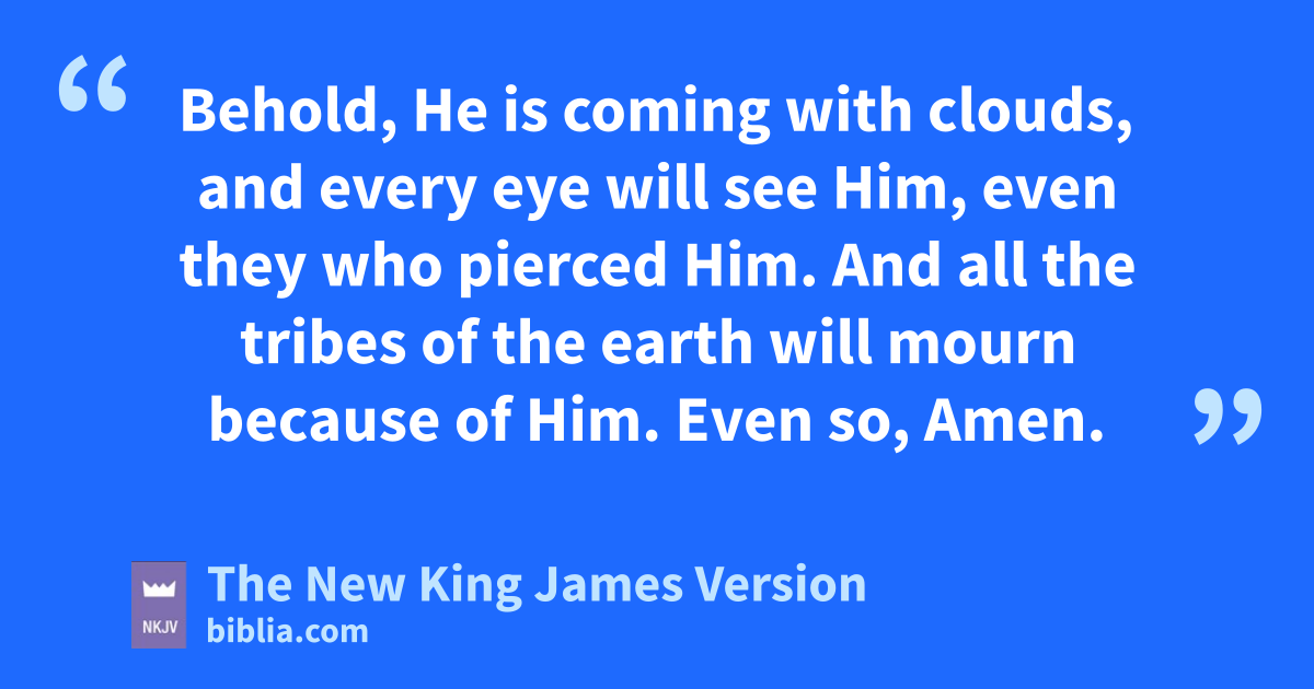 7 Behold, He is coming with rclouds, and every eye will see Him, even sthey who pierced Him. And all the tribes of the earth will mourn because of Him. Even so, Amen.