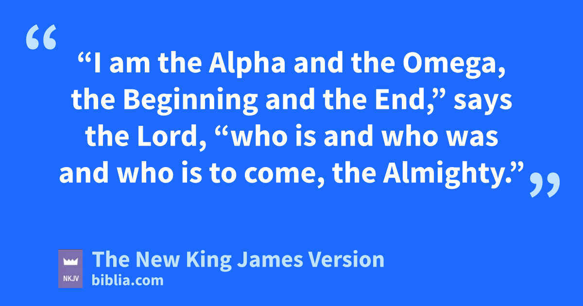 8 t“I am the Alpha and the Omega, 4the Beginning and the End,” says the 5Lord, u“who is and who was and who is to come, the vAlmighty.”