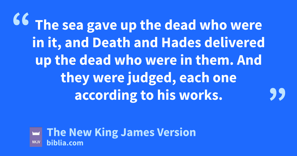 11 Then I saw a great white throne and Him who sat on it, from whose face uthe earth and the heaven fled away. vAnd there was found no place for them. 12 And I saw the dead, wsmall and great, standing before 3God, xand books were opened. And another ybook was opened, which is the Book of Life. And the dead were judged zaccording to their works, by the things which were written in the books. 13 The sea gave up the dead who were in it, aand Death and Hades delivered up the dead who were in them. bAnd they were judged, each one according to his works. 14 Then cDeath and Hades were cast into the lake of fire. dThis is the second 4death. 15 And anyone not found written in the Book of Life ewas cast into the lake of fire.