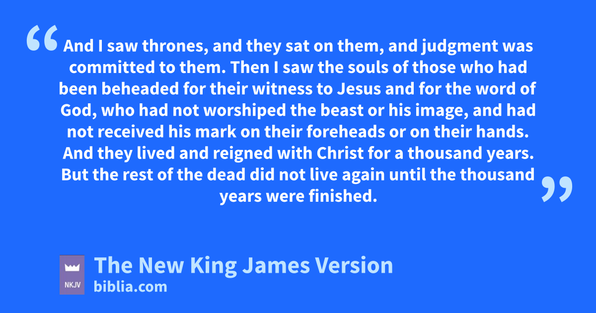 4 And I saw ethrones, and they sat on them, and fjudgment was committed to them. Then I saw gthe souls of those who had been beheaded for their witness to Jesus and for the word of God, hwho had not worshiped the beast ior his image, and had not received his mark on their foreheads or on their hands. And they jlived and kreigned with Christ for 1a thousand years. 5 But the rest of the dead did not live again until the thousand years were finished. This is the first resurrection. 6 Blessed and holy is he who has part in the first resurrection. Over such lthe second death has no power, but they shall be mpriests of God and of Christ, nand shall reign with Him a thousand years.