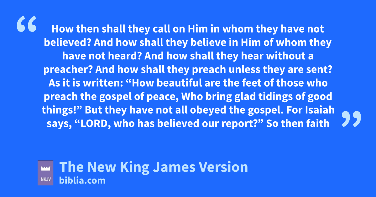 14 How then shall they call on Him in whom they have not believed? And how shall they believe in Him of whom they have not heard? And how shall they hear pwithout a preacher? 15 And how shall they preach unless they are sent? As it is written: