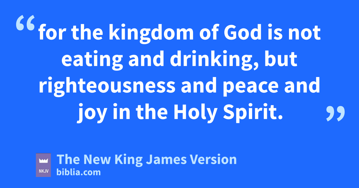 14 I know and am convinced by the Lord Jesus pthat there is nothing unclean of itself; but to him who considers anything to be unclean, to him it is unclean. 15 Yet if your brother is grieved because of your food, you are no longer walking in love. qDo not destroy with your food the one for whom Christ died. 16 rTherefore do not let your good be spoken of as evil; 17 sfor the kingdom of God is not eating and drinking, but righteousness and tpeace and joy in the Holy Spirit. 18 For he who serves Christ in 5these things uis acceptable to God and approved by men.