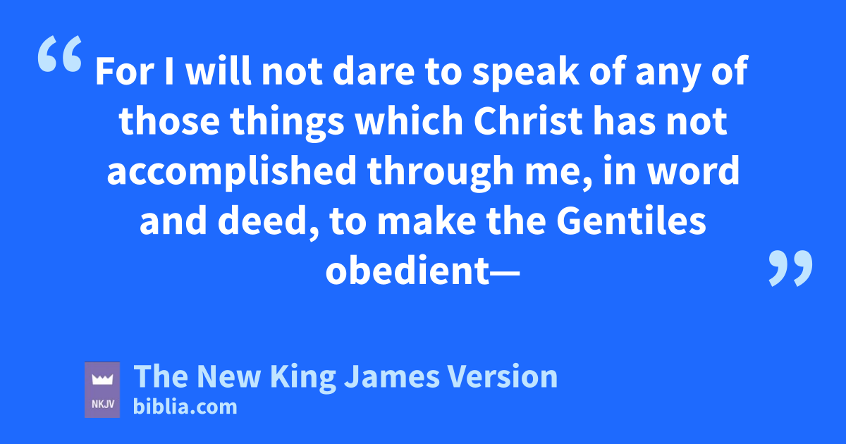 14 Now rI myself am confident concerning you, my brethren, that you also are full of goodness, sfilled with all knowledge, able also to admonish 6one another. 15 Nevertheless, brethren, I have written more boldly to you on some points, as reminding you, tbecause of the grace given to me by God, 16 that uI might be a minister of Jesus Christ to the Gentiles, ministering the gospel of God, that the voffering 7of the Gentiles might be acceptable, sanctified by the Holy Spirit. 17 Therefore I have reason to glory in Christ Jesus win the things which pertain to God. 18 For I will not dare to speak of any of those things xwhich Christ has not accomplished through me, in word and deed, yto make the Gentiles obedient—19 zin mighty signs and wonders, by the power of the Spirit of God, so that from Jerusalem and round about to Illyricum I have fully preached the gospel of Christ. 20 And so I have made it my aim to preach the gospel, not where Christ was named, alest I should build on another man’s foundation, 21 but as it is written:
