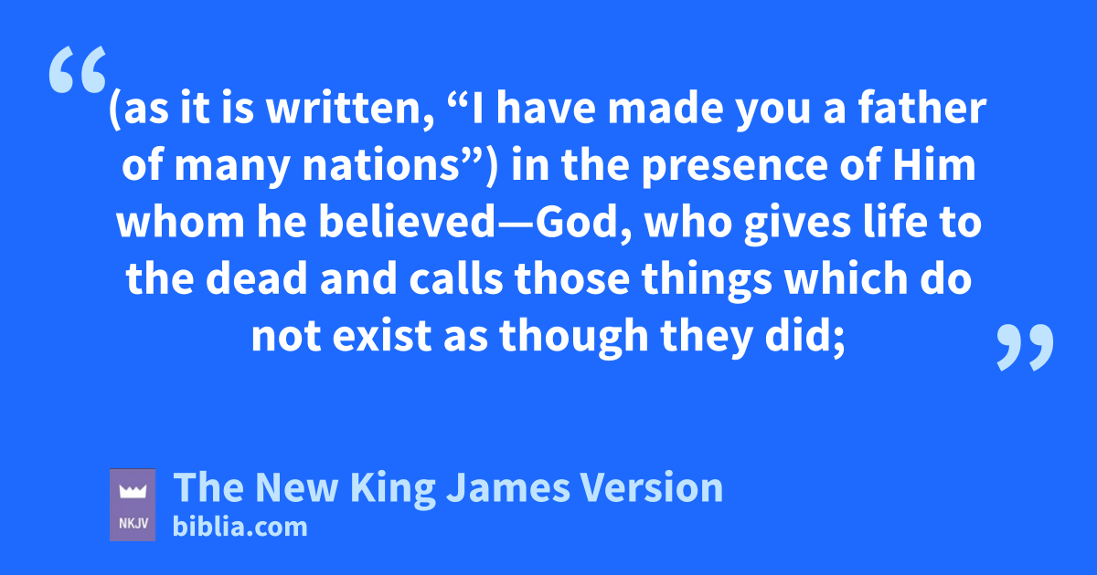 16 Therefore it is of faith that it might be paccording to grace, qso that the promise might be 4sure to all the seed, not only to those who are of the law, but also to those who are of the faith of Abraham, rwho is the father of us all 17 (as it is written, s“I have made you a father of many nations”) in the presence of Him whom he believed—God, twho gives life to the dead and calls those uthings which do not exist as though they did; 18 who, contrary to hope, in hope believed, so that he became the father of many nations, according to what was spoken, v“So shall your descendants be.” 19 And not being weak in faith, whe did not consider his own body, already dead (since he was about a hundred years old), xand the deadness of Sarah’s womb. 20 He did not waver at the promise of God through unbelief, but was strengthened in faith, giving glory to God, 21 and being fully convinced that what He had promised yHe was also able to perform. 22 And therefore z“it was accounted to him for righteousness.”