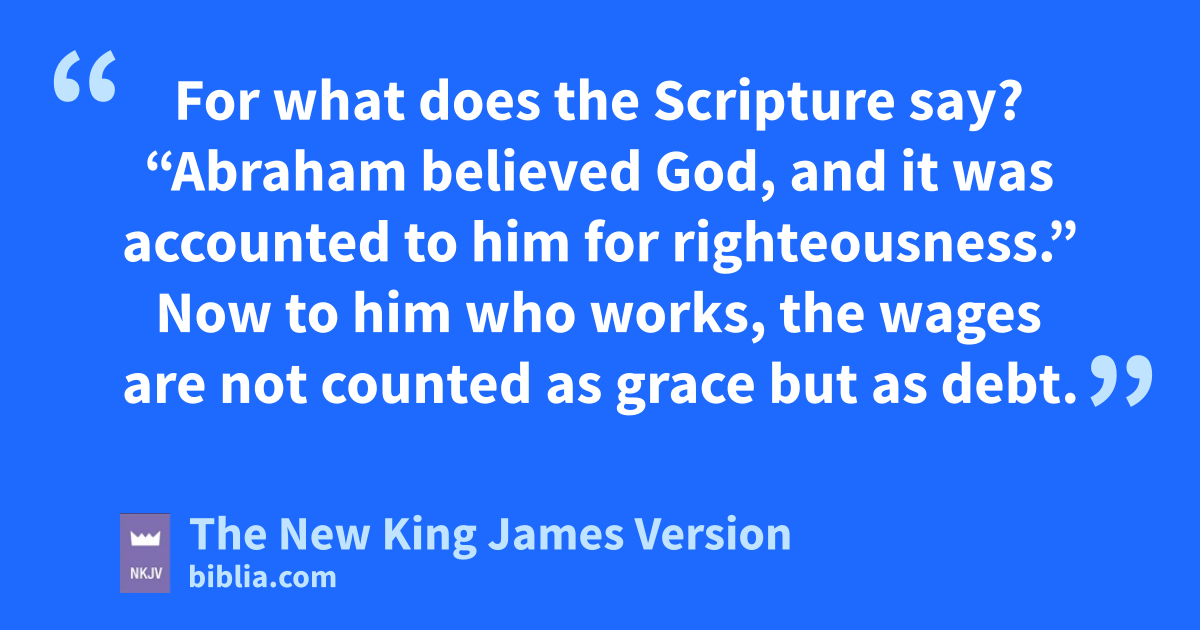 4 What then shall we say that aAbraham our bfather 1has found according to the flesh? 2 For if Abraham was cjustified by works, he has something to boast about, but not before God. 3 For what does the Scripture say? d“Abraham believed God, and it was 2accounted to him for righteousness.” 4 Now eto him who works, the wages are not counted 3as grace but 3as debt.