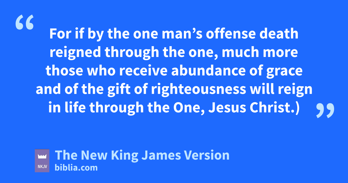 12 Therefore, just as sthrough one man sin entered the world, and tdeath through sin, and thus death spread to all men, because all sinned—13 (For until the law sin was in the world, but usin is not imputed when there is no law. 14 Nevertheless death reigned from Adam to Moses, even over those who had not sinned according to the likeness of the transgression of Adam, vwho is a type of Him who was to come. 15 But the free gift is not like the 5offense. For if by the one man’s offense many died, much more the grace of God and the gift by the grace of the one Man, Jesus Christ, abounded wto many. 16 And the gift is not like that which came through the one who sinned. For the judgment which came from one offense resulted in condemnation, but the free gift which came from many 6offenses resulted in justification. 17 For if by the one man’s 7offense death reigned through the one, much more those who receive abundance of grace and of the gift of righteousness will reign in life through the One, Jesus Christ.)