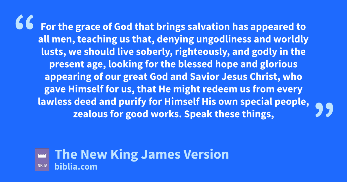 11 For gthe grace of God that brings salvation has appeared to all men, 12 teaching us that, denying ungodliness and worldly lusts, we should live soberly, righteously, and godly in the present age, 13 hlooking for the blessed ihope and glorious appearing of our great God and Savior Jesus Christ, 14 jwho gave Himself for us, that He might redeem us from every lawless deed kand purify for Himself lHis own special people, zealous for good works.
