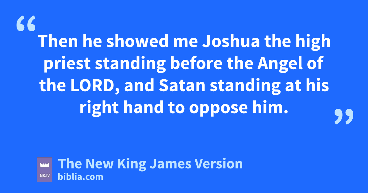 3 Then he showed me aJoshua the high priest standing before the Angel of the Lord, and bSatan 1standing at his right hand to oppose him. 2 And the Lord said to Satan, c“The Lord rebuke you, Satan! The Lord who dhas chosen Jerusalem rebuke you! eIs this not a brand plucked from the fire?”