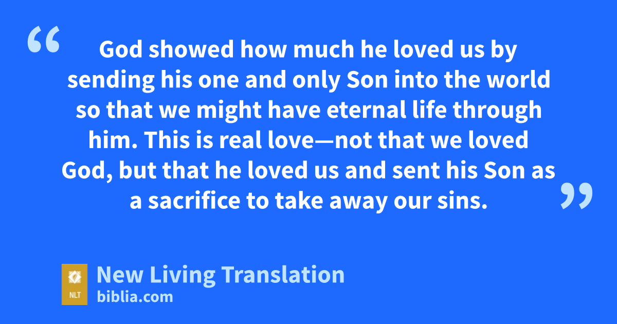 9 God showed how much he loved us by sending his one and only Son into the world so that we might have eternal life through him. 10 This is real love—not that we loved God, but that he loved us and sent his Son as a sacrifice to take away our sins.