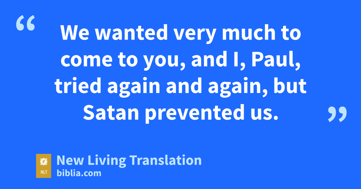 17 Dear brothers and sisters, after we were separated from you for a little while (though our hearts never left you), we tried very hard to come back because of our intense longing to see you again. 18 We wanted very much to come to you, and I, Paul, tried again and again, but Satan prevented us. 19 After all, what gives us hope and joy, and what will be our proud reward and crown as we stand before our Lord Jesus when he returns? It is you! 20 Yes, you are our pride and joy.
