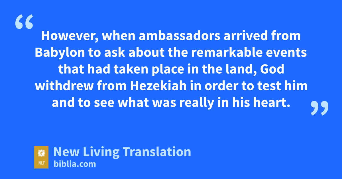 31 However, when ambassadors arrived from Babylon to ask about the remarkable events that had taken place in the land, God withdrew from Hezekiah in order to test him and to see what was really in his heart.