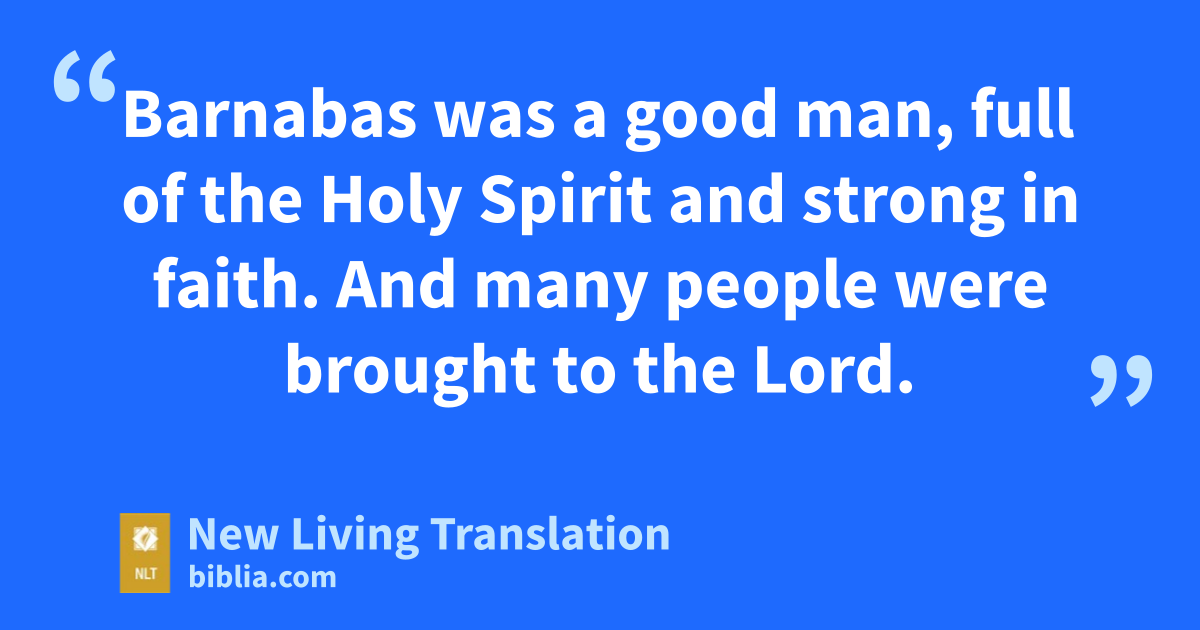 22 When the church at Jerusalem heard what had happened, they sent Barnabas to Antioch. 23 When he arrived and saw this evidence of God’s blessing, he was filled with joy, and he encouraged the believers to stay true to the Lord. 24 Barnabas was a good man, full of the Holy Spirit and strong in faith. And many people were brought to the Lord.