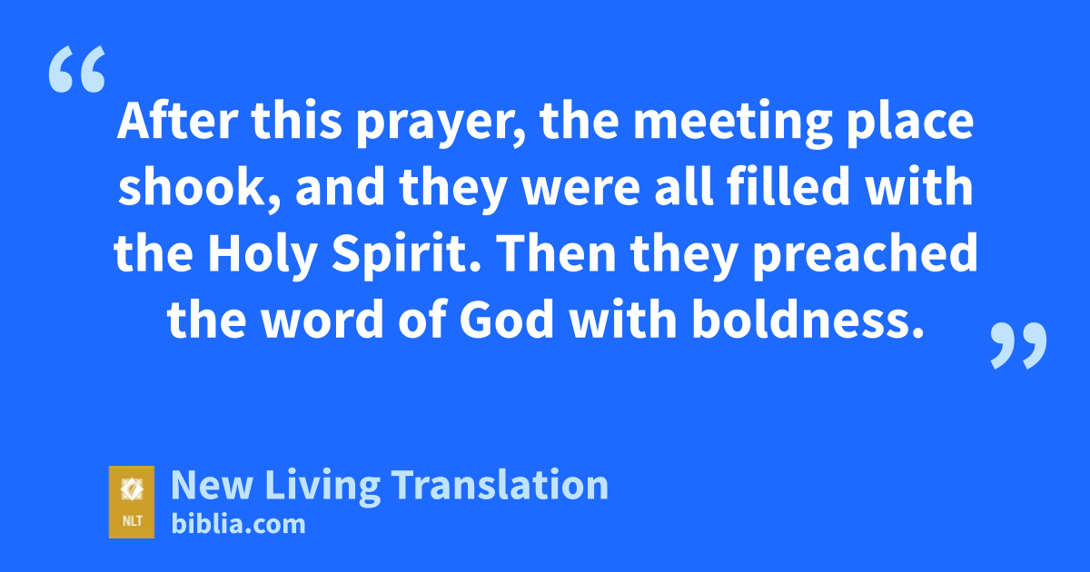 31 After this prayer, the meeting place shook, and they were all filled with the Holy Spirit. Then they preached the word of God with boldness.