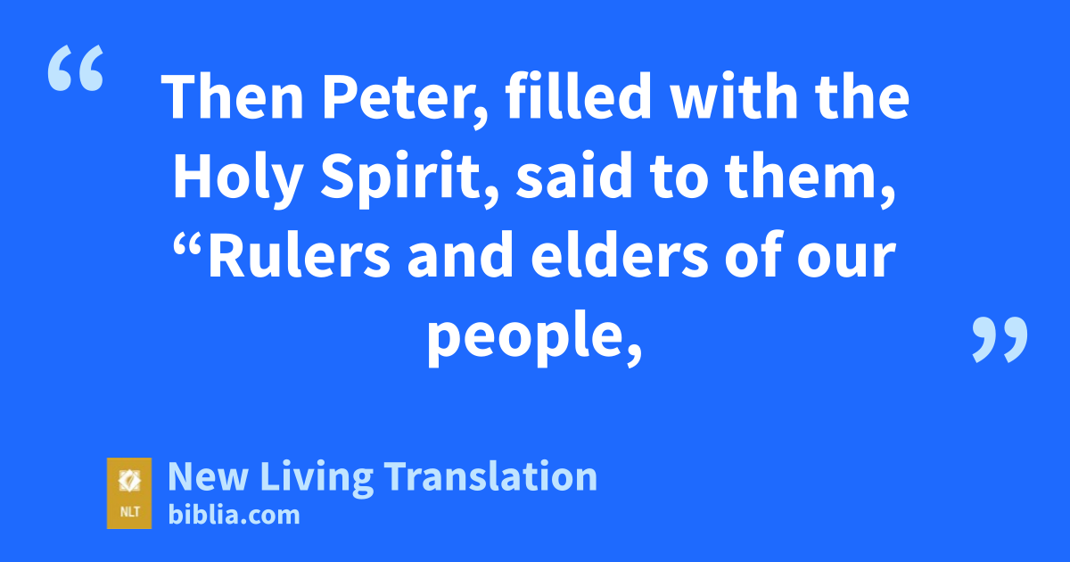 8 Then Peter, filled with the Holy Spirit, said to them, “Rulers and elders of our people, 9 are we being questioned today because we’ve done a good deed for a crippled man? Do you want to know how he was healed? 10 Let me clearly state to all of you and to all the people of Israel that he was healed by the powerful name of Jesus Christ the Nazarene,* the man you crucified but whom God raised from the dead. 11 For Jesus is the one referred to in the Scriptures, where it says,