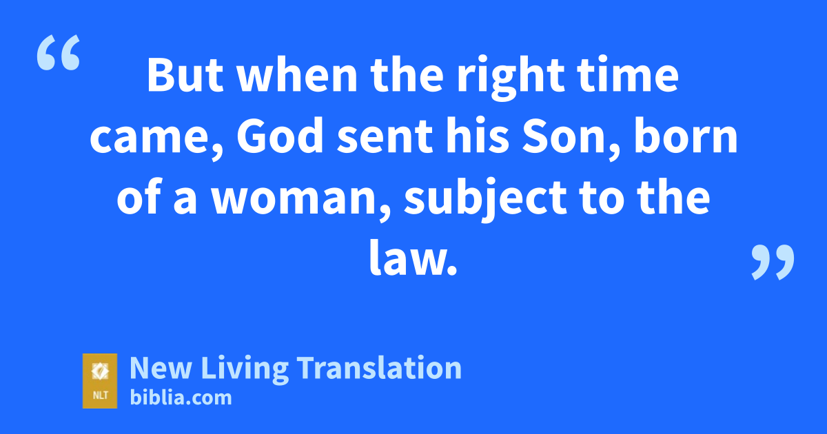 4 But when the right time came, God sent his Son, born of a woman, subject to the law. 5 God sent him to buy freedom for us who were slaves to the law, so that he could adopt us as his very own children.* 6 And because we* are his children, God has sent the Spirit of his Son into our hearts, prompting us to call out, “Abba, Father.”* 7 Now you are no longer a slave but God’s own child.* And since you are his child, God has made you his heir.