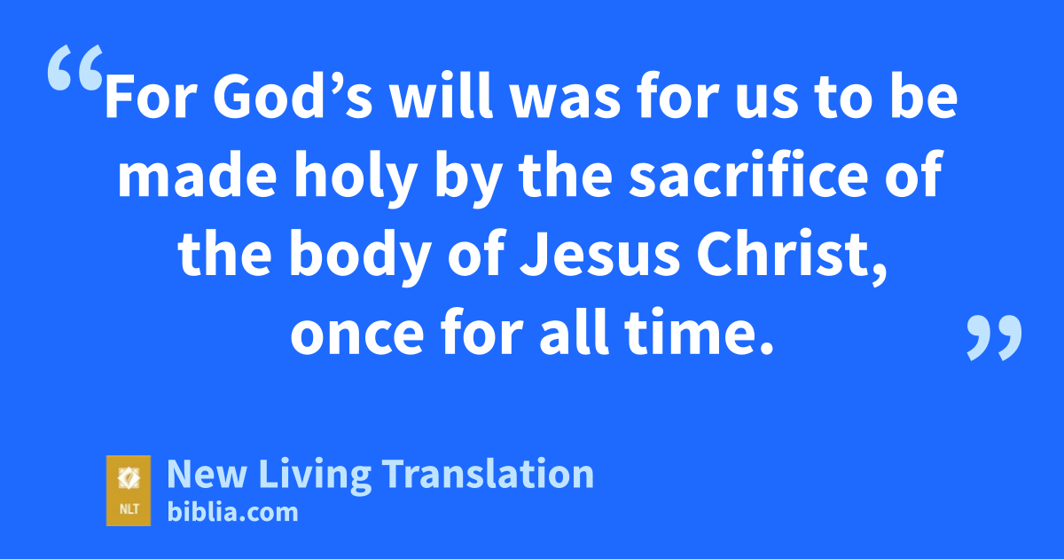 8 First, Christ said, “You did not want animal sacrifices or sin offerings or burnt offerings or other offerings for sin, nor were you pleased with them” (though they are required by the law of Moses). 9 Then he said, “Look, I have come to do your will.” He cancels the first covenant in order to put the second into effect. 10 For God’s will was for us to be made holy by the sacrifice of the body of Jesus Christ, once for all time.
