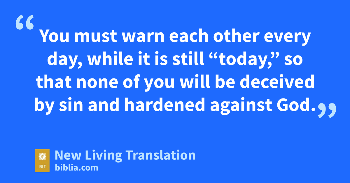 12 Be careful then, dear brothers and sisters.* Make sure that your own hearts are not evil and unbelieving, turning you away from the living God. 13 You must warn each other every day, while it is still “today,” so that none of you will be deceived by sin and hardened against God. 14 For if we are faithful to the end, trusting God just as firmly as when we first believed, we will share in all that belongs to Christ. 15 Remember what it says: