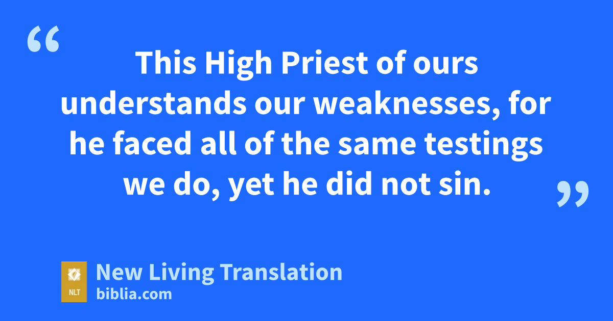 14 So then, since we have a great High Priest who has entered heaven, Jesus the Son of God, let us hold firmly to what we believe. 15 This High Priest of ours understands our weaknesses, for he faced all of the same testings we do, yet he did not sin. 16 So let us come boldly to the throne of our gracious God. There we will receive his mercy, and we will find grace to help us when we need it most.