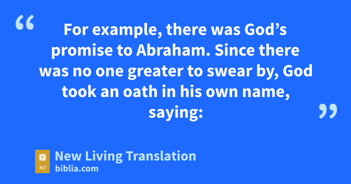 13 For example, there was God’s promise to Abraham. Since there was no one greater to swear by, God took an oath in his own name, saying: