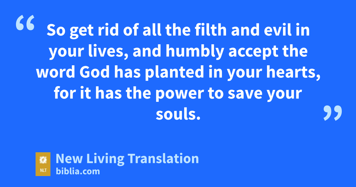 19 Understand this, my dear brothers and sisters: You must all be quick to listen, slow to speak, and slow to get angry. 20 Human anger* does not produce the righteousness* God desires. 21 So get rid of all the filth and evil in your lives, and humbly accept the word God has planted in your hearts, for it has the power to save your souls.