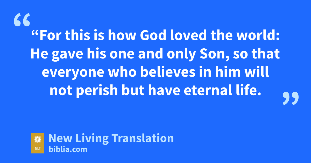 16 “For this is how God loved the world: He gave* his one and only Son, so that everyone who believes in him will not perish but have eternal life. 17 God sent his Son into the world not to judge the world, but to save the world through him.