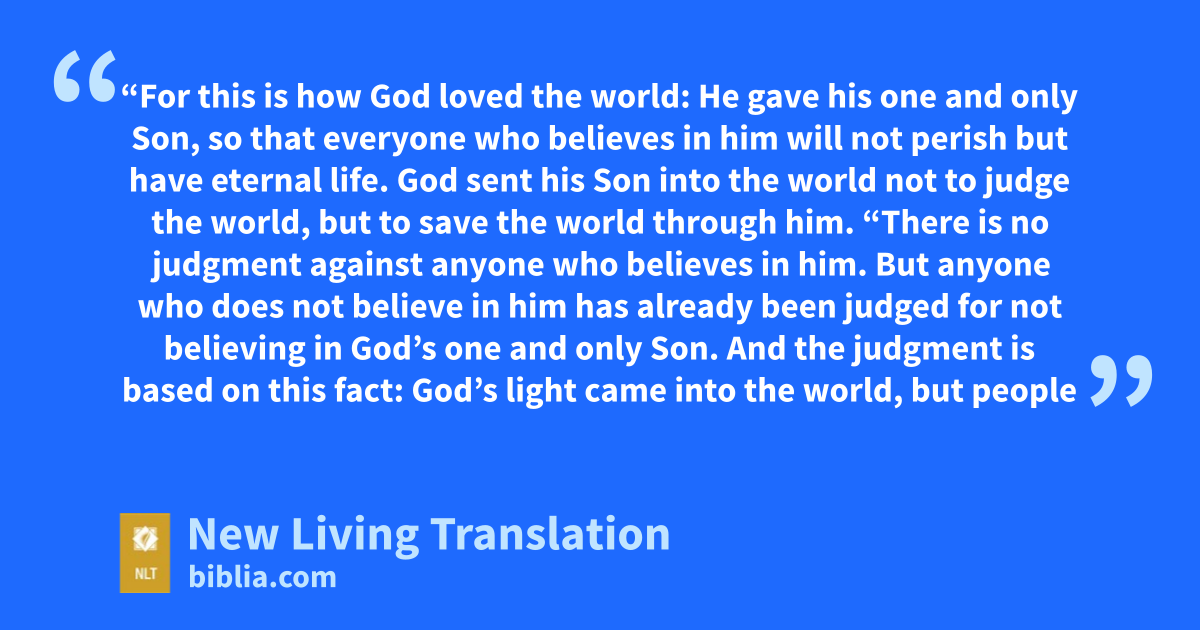16 “For this is how God loved the world: He gave* his one and only Son, so that everyone who believes in him will not perish but have eternal life. 17 God sent his Son into the world not to judge the world, but to save the world through him.