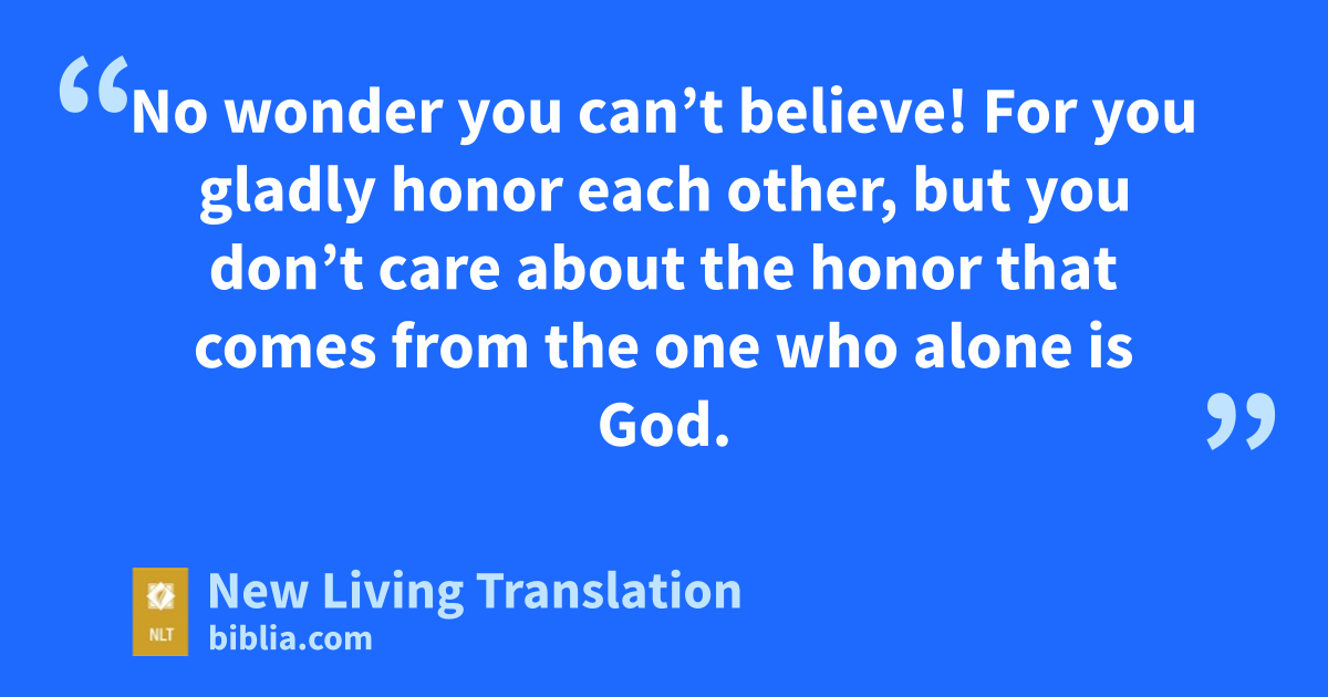 41 “Your approval means nothing to me, 42 because I know you don’t have God’s love within you. 43 For I have come to you in my Father’s name, and you have rejected me. Yet if others come in their own name, you gladly welcome them. 44 No wonder you can’t believe! For you gladly honor each other, but you don’t care about the honor that comes from the one who alone is God.*