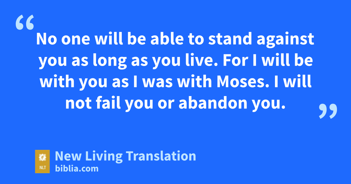 After the death of Moses the Lord’s servant, the Lord spoke to Joshua son of Nun, Moses’ assistant. He said, 2 “Moses my servant is dead. Therefore, the time has come for you to lead these people, the Israelites, across the Jordan River into the land I am giving them. 3 I promise you what I promised Moses: ‘Wherever you set foot, you will be on land I have given you—4 from the Negev wilderness in the south to the Lebanon mountains in the north, from the Euphrates River in the east to the Mediterranean Sea* in the west, including all the land of the Hittites.’ 5 No one will be able to stand against you as long as you live. For I will be with you as I was with Moses. I will not fail you or abandon you.
