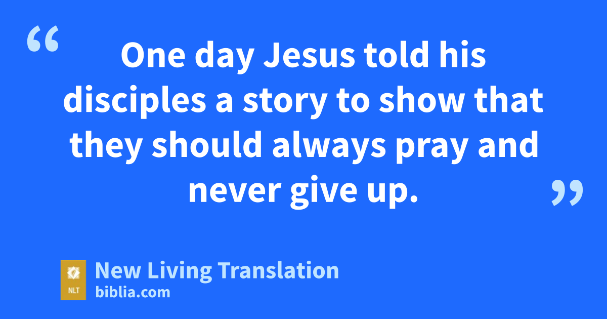 One day Jesus told his disciples a story to show that they should always pray and never give up. 2 “There was a judge in a certain city,” he said, “who neither feared God nor cared about people. 3 A widow of that city came to him repeatedly, saying, ‘Give me justice in this dispute with my enemy.’ 4 The judge ignored her for a while, but finally he said to himself, ‘I don’t fear God or care about people, 5 but this woman is driving me crazy. I’m going to see that she gets justice, because she is wearing me out with her constant requests!’ ”