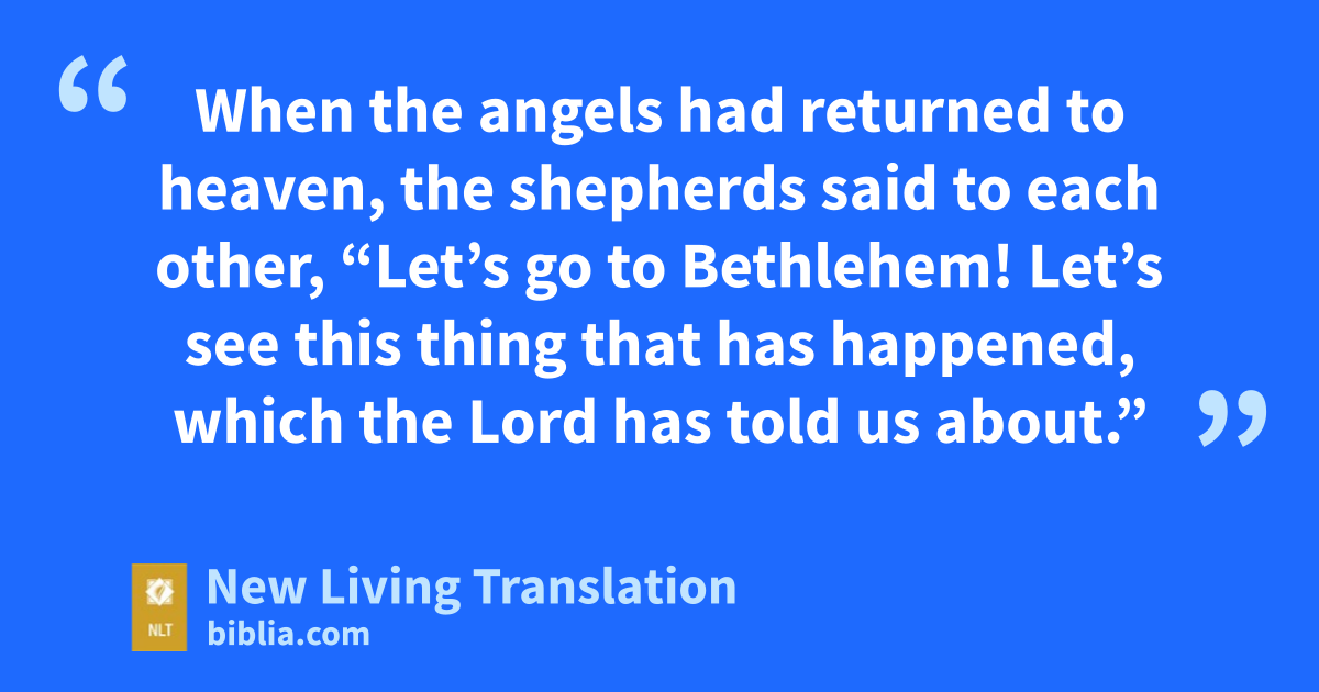 15 When the angels had returned to heaven, the shepherds said to each other, “Let’s go to Bethlehem! Let’s see this thing that has happened, which the Lord has told us about.”