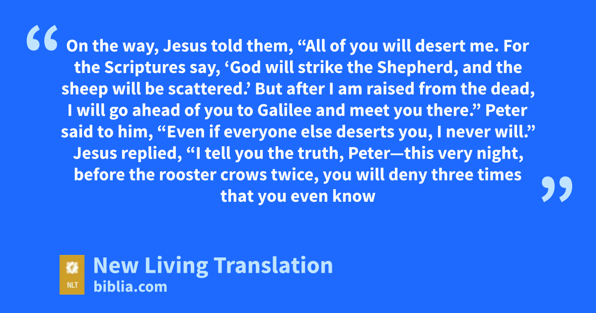 Suddenly, Jesus’ words flashed through Peter’s mind: “Before the rooster crows twice, you will deny three times that you even know me.” And he broke down and wept.