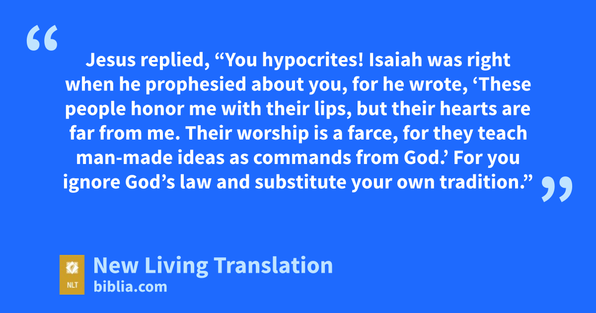 9 Then he said, “You skillfully sidestep God’s law in order to hold on to your own tradition. 10 For instance, Moses gave you this law from God: ‘Honor your father and mother,’* and ‘Anyone who speaks disrespectfully of father or mother must be put to death.’* 11 But you say it is all right for people to say to their parents, ‘Sorry, I can’t help you. For I have vowed to give to God what I would have given to you.’* 12 In this way, you let them disregard their needy parents. 13 And so you cancel the word of God in order to hand down your own tradition. And this is only one example among many others.”
