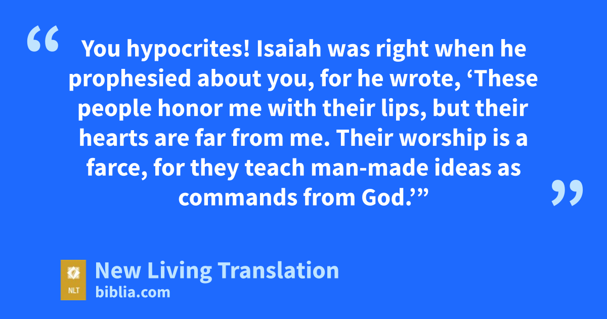 3 Jesus replied, “And why do you, by your traditions, violate the direct commandments of God? 4 For instance, God says, ‘Honor your father and mother,’* and ‘Anyone who speaks disrespectfully of father or mother must be put to death.’* 5 But you say it is all right for people to say to their parents, ‘Sorry, I can’t help you. For I have vowed to give to God what I would have given to you.’ 6 In this way, you say they don’t need to honor their parents.* And so you cancel the word of God for the sake of your own tradition. 7 You hypocrites! Isaiah was right when he prophesied about you, for he wrote,