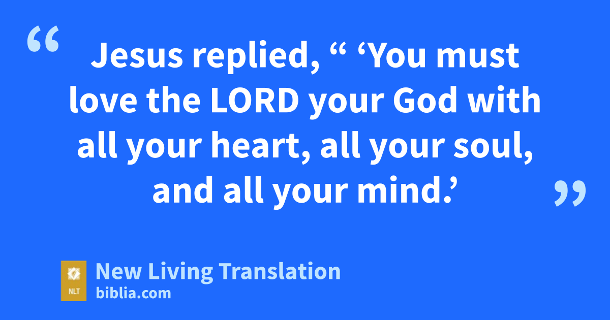 37 Jesus replied, “ ‘You must love the Lord your God with all your heart, all your soul, and all your mind.’* 38 This is the first and greatest commandment. 39 A second is equally important: ‘Love your neighbor as yourself.’* 40 The entire law and all the demands of the prophets are based on these two commandments.”
