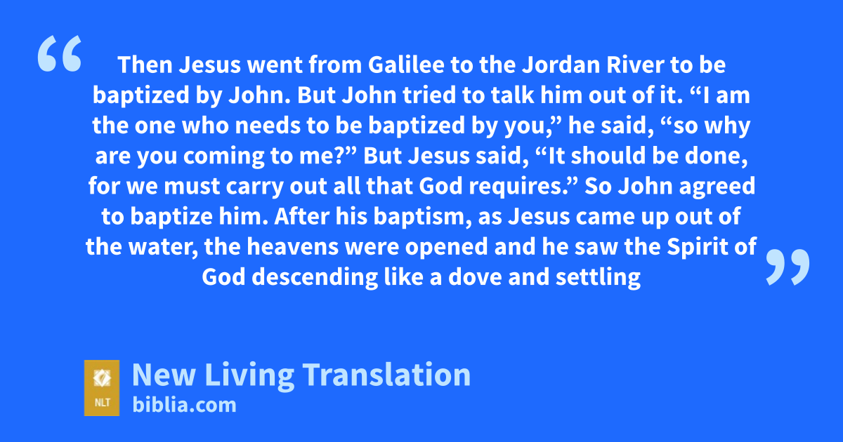 13 Then Jesus went from Galilee to the Jordan River to be baptized by John. 14 But John tried to talk him out of it. “I am the one who needs to be baptized by you,” he said, “so why are you coming to me?”