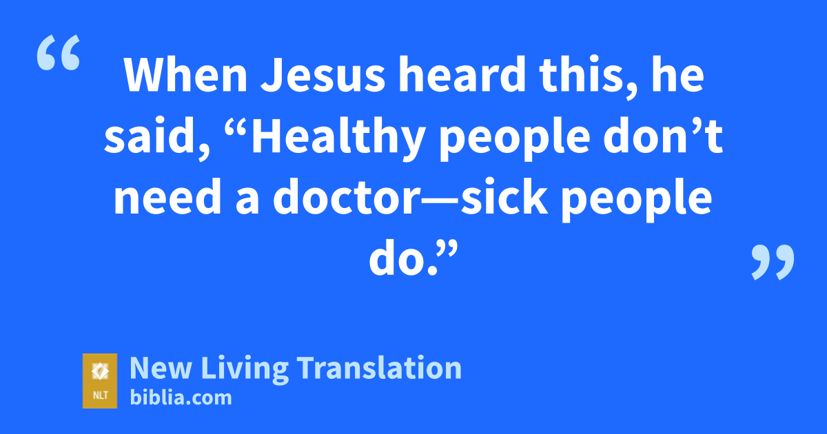 12 When Jesus heard this, he said, “Healthy people don’t need a doctor—sick people do.” 13 Then he added, “Now go and learn the meaning of this Scripture: ‘I want you to show mercy, not offer sacrifices.’* For I have come to call not those who think they are righteous, but those who know they are sinners.”