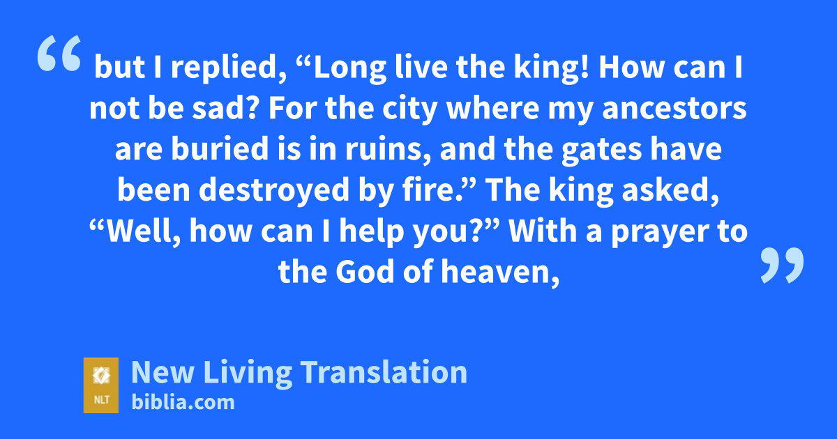 Then I was terrified, 3 but I replied, “Long live the king! How can I not be sad? For the city where my ancestors are buried is in ruins, and the gates have been destroyed by fire.”