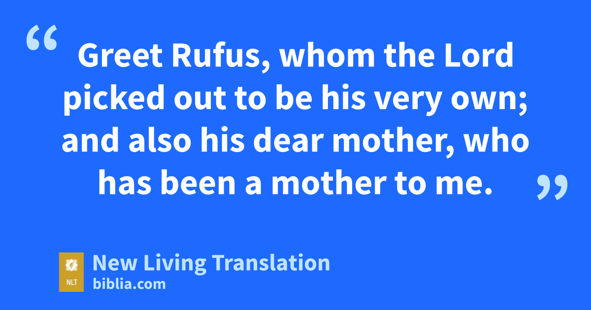 10 Greet Apelles, a good man whom Christ approves. And give my greetings to the believers from the household of Aristobulus. 11 Greet Herodion, my fellow Jew.* Greet the Lord’s people from the household of Narcissus. 12 Give my greetings to Tryphena and Tryphosa, the Lord’s workers, and to dear Persis, who has worked so hard for the Lord. 13 Greet Rufus, whom the Lord picked out to be his very own; and also his dear mother, who has been a mother to me.