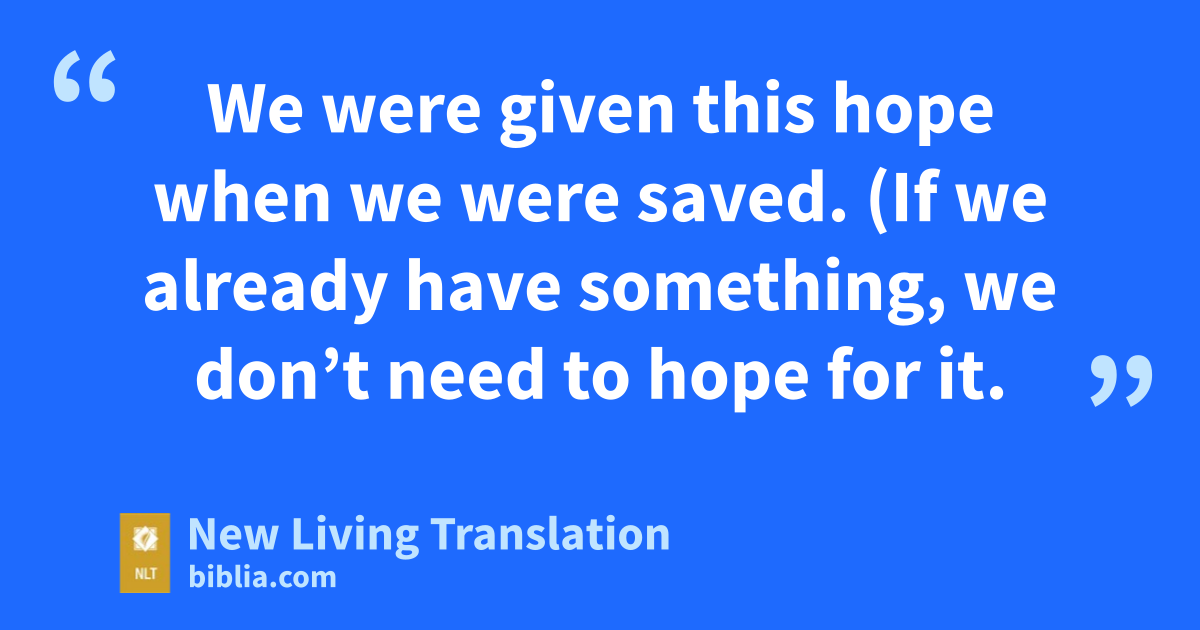 18 Yet what we suffer now is nothing compared to the glory he will reveal to us later. 19 For all creation is waiting eagerly for that future day when God will reveal who his children really are. 20 Against its will, all creation was subjected to God’s curse. But with eager hope, 21 the creation looks forward to the day when it will join God’s children in glorious freedom from death and decay. 22 For we know that all creation has been groaning as in the pains of childbirth right up to the present time. 23 And we believers also groan, even though we have the Holy Spirit within us as a foretaste of future glory, for we long for our bodies to be released from sin and suffering. We, too, wait with eager hope for the day when God will give us our full rights as his adopted children,* including the new bodies he has promised us. 24 We were given this hope when we were saved. (If we already have something, we don’t need to hope* for it. 25 But if we look forward to something we don’t yet have, we must wait patiently and confidently.)