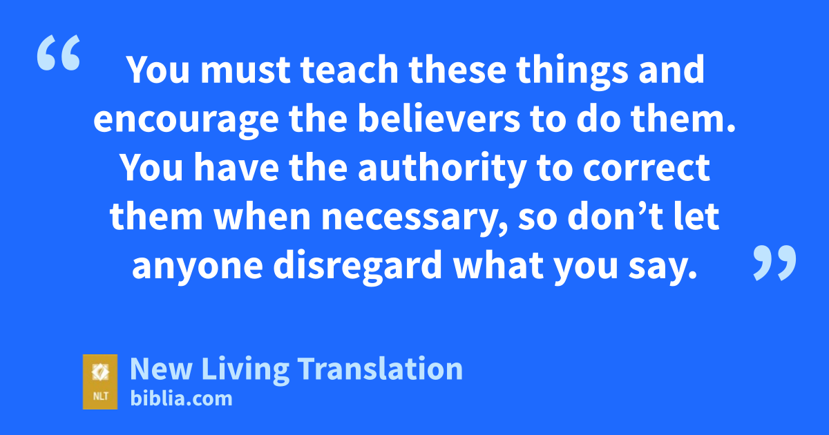 15 You must teach these things and encourage the believers to do them. You have the authority to correct them when necessary, so don’t let anyone disregard what you say.
