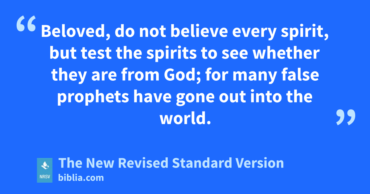 Beloved, do not believe every spirit, but test the spirits to see whether they are from God; for many false prophets have gone out into the world.