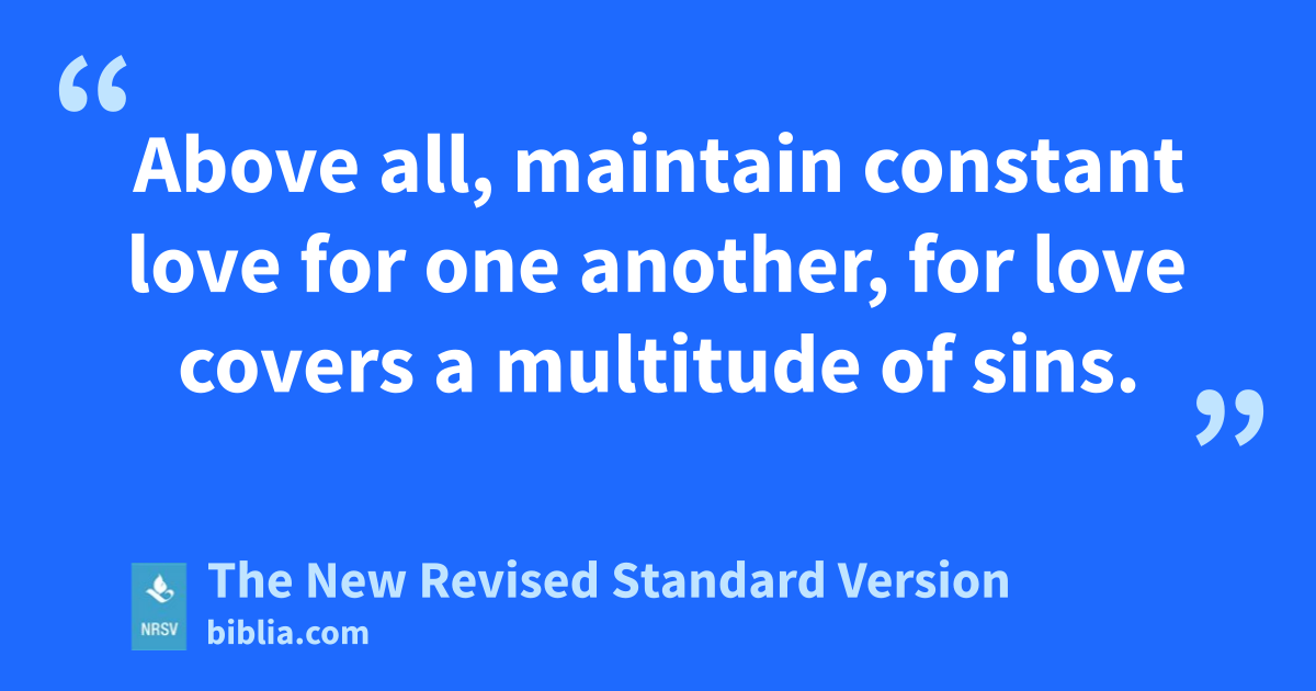 Above all, maintain constant love for one another, for love covers a multitude of sins.